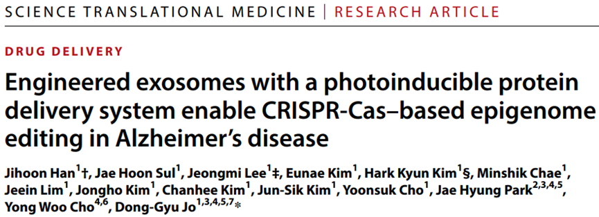 治疗性蛋白质的递送有望治疗多种疾病。目前已有多种蛋白质疗法应用于临床,但它们多数局限于单克隆抗体、肽类激素和细胞因子,往往通过与细胞质膜上的受体结合来发挥作用,其递送有效性与安全性也存在不足。同时,更多疾病是由细胞内特定蛋白的缺乏或功能障碍引起的,这些疾病的治疗需要实现治疗性蛋白质的细胞内递送,但这一点目前仍然面临着重重障碍。Dong-Gyu Jo是成均馆大学药学院教授,他向我们介绍了当前蛋白质递送面临的3项重要挑战:“首先是免疫系统对注射蛋白质的反应,这可能导致免疫原性效应,不仅降低治疗效果,还会产生副作用;另一个重要挑战是确保有效递送跨越生物屏障,尤其是在治疗阿尔茨海默病等神经退行性疾病时,需要跨越血脑屏障;此外,治疗性蛋白质的生物利用度通常较低,在到达目标位置之前容易被迅速降解或清除,从而限制了治疗效果。”为了解决上述挑战,设计出更高效、靶向性更强、更加可控的蛋白质递送机制,Dong-Gyu Jo教授带领团队尝试从外泌体(exosome)中寻找全新的递送方案。在一项发表于近期《科学-转化医学》(Science Translational Medicine)的研究中,研究团队开发出了基于外泌体的细胞内治疗性蛋白递送技术MAPLEX,并在小鼠实验中证实了其有效递送,并治疗阿尔茨海默病的能力。外泌体是由细胞自然分泌的纳米尺寸囊泡。“外泌体具有天然穿过生物屏障(包括血脑屏障)的能力,并且与脂质纳米颗粒等合成载体相比,触发免疫反应的可能性较低。”Dong-Gyu Jo教授表示,这些优势让外泌体有潜力成为治疗性生物分子的纳米载体。不过,目前使用外泌体的蛋白质递送系统也存在待解决的悖论:要将蛋白质装载到外泌体中,需要让货物蛋白与外泌体标记蛋白相融合;但另一方面,抵达目标位置后,货物蛋白需要与外泌体标记蛋白分离,才能进入受体细胞、正常发挥作用。因此,需要设计工具让货物蛋白和外泌体标记蛋白在装载时结合,但在递送过程中切割。为了精确控制两者结合的时间与空间,确保货物蛋白在进入靶细胞时能从外泌体膜中释放,研究团队创新性设计了一套光裂解系统。具体来说,作者将光裂解蛋白mMaple3融合在货物蛋白和外泌体标记蛋白CD9之间,从而实现第一个目标:将货物蛋白装载到外泌体中。这时的货物蛋白-mMaple3-CD9虽然是结合状态,但其中的纽带mMaple3却是一枚“定时炸弹”。作为光裂解蛋白,顾名思义,mMaple3可以被特定波长的光裂解。于是,在提纯融合蛋白后,研究团队在给药前通过450纳米的光诱导mMaple3裂解,这时货物蛋白也自然与CD9分离,从外泌体膜释放,实现了货物蛋白的细胞内递送!▲MAPLEX系统设计示意图(图片来源:参考资料[1])Dong-Gyu Jo教授表示,这套系统确保了在细胞环境中正确激活和定位,提高了蛋白质递送的安全性和有效性。研究团队将该系统命名为“mMaple3介导的蛋白质装载到外泌体和从外泌体释放”,简称MAPLEX。随后,研究团队对MAPLEX的实际应用潜力进行了初步检验。前面说到,由于需要穿过血脑屏障,治疗阿尔茨海默病的细胞内蛋白质药物递送尤为困难。我们知道,β-淀粉样蛋白是阿尔茨海默病的致病蛋白之一,而Β位淀粉样蛋白前体蛋白切割酶1(BACE1)是β-淀粉样蛋白生成途径的限速步骤,因此减少BACE1蛋白将有助于改善认知功能。因此在这项实验中,研究团队使用MAPLEX,装载的货物蛋白是dCas9蛋白复合物与DNA甲基转移酶3A催化结构域(D3A)的融合蛋白,其中dCas9还结合了靶向Bace1基因的单向导RNA。由此,完整的货物蛋白称为sgBace1-dCas9-D3A。▲MAPLEX系统能够对阿尔茨海默病小鼠模型进行体内的基因重组(上)与表观遗传(下)编辑(图片来源:参考资料[1])利用这套系统,研究团队通过鼻腔分别给两种阿尔茨海默病小鼠模型给药。通过基因重组与表观遗传编辑,MAPLEX分别降低了两种小鼠大脑中的Bace1表达和β-淀粉样蛋白水平,成功实现了对脑细胞的蛋白质递送,改善了小鼠的认知和记忆能力。对于MAPLEX系统的未来前景,Dong-Gyu Jo教授表示,除了在神经退行性疾病中的已有发现,研究团队正在探索其在罕见遗传性疾病领域的应用前景:“对于这类疾病,精确的基因调控至关重要。而MAPLEX可以向受罕见遗传病影响的细胞递送基因编辑工具,从而提供潜在的靶向治愈手段。” Dong-Gyu Jo教授继续介绍道:“未来我们还将进一步完善该系统,并将其应用扩展到包括癌症、自身免疫性疾病在内的一系列治疗领域。我们还在寻求合作,以加速MAPLEX进入临床试验,希望它能成为治疗多种疾病的多功能平台。”[1] Jihoon Han et al. Engineered exosomes with a photoinducible protein delivery system enable CRISPR-Cas–based epigenome editing in Alzheimer’s disease. Science Translational Medicine (2024). DOI: 10.1126/scitranslmed.adi4830