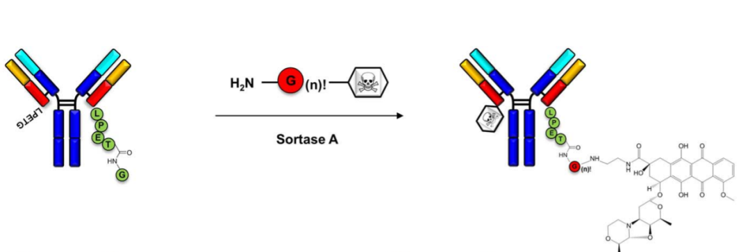 SMAC技术利用Sortase A,一种源自金黄色葡萄球菌的转肽酶,可以催化含有寡甘氨酸的分子连接到具有序列基序的蛋白质(LPXTG)。PNU-159682是奈莫霉素的肝脏代谢物,可抑制DNA拓扑异构酶II,其效力比亲本分子高三个数量级。有趣的是,与其他有效载荷相比,基于蒽环类的连接子有效载荷通过SMAC技术的共轭效率更高,DAR在3.7到3.9之间,通过简单的链霉素亲和层析步骤可以有效地将DAR增加到4。