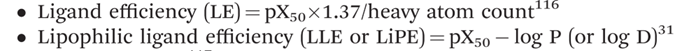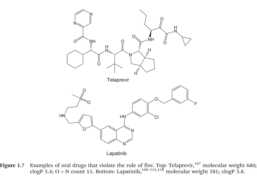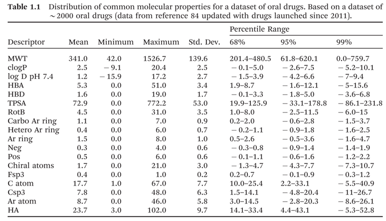 目前,制药行业正面临着严重的生产力危机,候选药物从提名到上市的过程中失败率高达96%。其中在临床前阶段,毒性是终止的主要原因;而疗效是临床II期和III期失败的主要原因(图1)。因此为了提高药物发现的成功率,我们需要对药物的理化性质、类药性、药理学、修饰策略等进行充分了解,本文首先先介绍药物的理化性质相关内容,希望对药物化学研究人员提供有用的参考。 药物设计中常常涉及到的药物理化参数主要有Log P, pKa, log D7.4, 溶解度,氢键等等。 1、 亲脂性(Lipophilicity) 化合物的亲脂性指的是化合物在非极性脂介质中的溶解情况,亲脂性可以对化合物的吸收、分布、代谢、排泄(ADME)、毒性以及药理活性产生重大影响。 化合物的亲脂性可以由两个参数来量化,Log P和Log D,其中Log P指的是在化合物的所有分子均以中性形式存在的 pH条件下,其在辛醇和水中分配系数的对数,具体公式如下: Log D指的是某一特定的pH下,化合物部分以离子形式存在,部分以中性分子形式存在,此pH下的化合物在辛醇和水中分配系数的对数,其中酸碱化合物的计算公式分别如下: 对于酸性化合物,其在溶液中的中性分子和阴离子的比值随着 pH的增加而减小,因此,Log D随着 pH的增加而减小。 相反,对于碱性化合物,其在溶液中的中性分子和阳离子的比值随着 pH的增加而增加。因此,Log D也随着 pH的增加而增加。 一个基于碳原子数和杂原子数计算化合物的Log P的简单方程如下所示: 药物发现中 Log D7.4对类药性的影响如下图所示: 2、 电离常数(Ionisation Constants) 由于生物膜实际上只支持中性分子的被动运输,因此分子的电离状态是影响化合物溶解度和渗透性的主要因素。当溶液中电离化分子的浓度与中性分子浓度相同时的pH即为pKa 50%的电离。pKa越小,酸性化合物的酸性越强,碱性化合物的碱性越弱。绝大部分化合物都可以离子化,且大部分药物呈碱性(75%)。 通过改变化合物的pKa可以改变化合物的溶解度和渗透性。碱性药物比酸性药物更易于有效地透过血脑屏障,酸性药物的酸性越强,溶解度越高。 3、 氢键(Hydrogen Bonding) 氢键主要包括分子内氢键和分子间氢键,氢键不仅影响配体和受体之间的结合力,还会影响化合物的溶解度、极性表面积、稳定性和渗透性等多种参数。 4、 溶解度(Solubility) 溶解度是化合物在与其固相处于平衡状态时在溶剂介质中所能达到的最高浓度。给药剂量为1mg/kg的条件下,对于低、中、高渗透率的药物可接受的最低溶解度为5,50和500ug/ml。最大可吸收剂量(MAD)可以用于评估化合物的溶解度,它指的是如果小肠可以被药物饱和4.5小时(270分钟),可以吸收的药物量,计算公式如下: 其中参数的含义为,S,pH6.5时的溶解度(mg/ml);Ka,瞬时吸收速率常数(min-1);SIWV,小肠水体积(ml);SITT,小肠转运时间(min)。 改善化合物溶解度的常见策略有:加入可电离基团、降低LogP、加入氢键、加入极性基团、降低分子量、构建前药等。 5、 类药五原则(rule of five) Lipinski 5 规则,可以用于评估化合物分子的类药性(druglikeness),主要包含以下四点:1、不超过 5 个氢键供体(氮氢键和氧氢键的总数)2、不超过 10 个氢键受体(所有氮或氧原子)3、分子量小于 500 Da ;4、计算得出的辛醇-水分配系数 (Clog P) 不超过 5。注意:一般来说,一种口服活性药物最多只能违反一次以上标准。 根据靶点的不同(eg. GPCR和激酶),将已上市、文献和专利中药物的理化性质相关数据进行统计,具体数据如下图所示: 当然也有一些药物不满足类药五原则中的多个条件,如NS3蛋白酶抑制剂Telaprevir和小分子酪氨酸激酶抑制剂Lapatinib。 6、 配体效率(Ligand Efficiency) 配体效率(LE)主要用于评估小分子发挥效应的效率,亲脂性配体效率(LLE)只是p(Activity)和亲脂性(cLogP或LogD)之间的差,并且是相对于分配到1-辛醇中的分子与靶标结合的特异性的估计值,两者的计算公式如下所示: 通过引入亲水基团、将苯环替换成芳杂环、控制杂环体积的大小等多种方法,可以在提高LLE的同时提高化合物的活性,降低化合物的脂溶性。 总体来说,口服药物中各种指标的理想参数值如下图所示,期望能对各位药物设计提供思路。